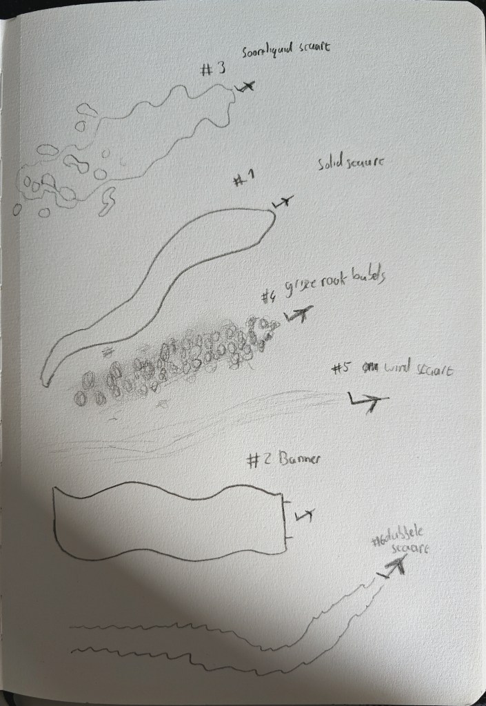 In the first image I made the plane a Brush in Illustrator and wanted to use it more as a pointing character with all of its personality in the way it flies. In the second image I looked at trails I could use for this plane and for most of these I wanted to have the text (when necessary) above it. However I did make a plane with a banner that would have the text in the banner.