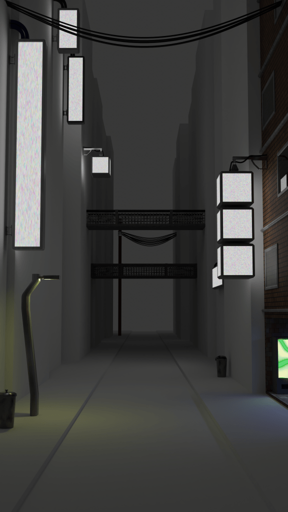 I think the floor looks to clean, textures are noticeably low quality, reflections are odd and the holograms are not that well made. also a lot of the models could have been better but I made a choice not to linger to much on it because there where plenty of others things to work on.